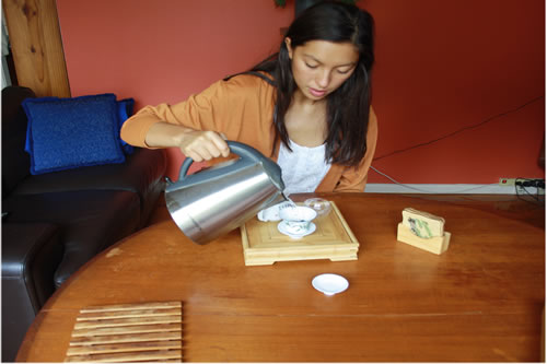 So, after the brutal heat of late which had kept me sipping on my invigorating green teas Dragon Well and Bi Lo Chun, a slight cool change gave me the excuse to (literally) dig into a beautiful ripened pu-erh Toucha. Before settling into this warm and cosy cuppa however, I got to try my hand at one of our new bamboo trays!